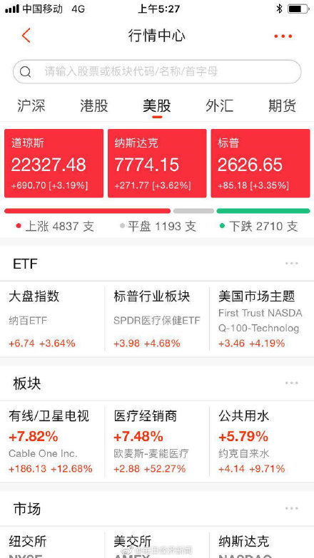 美股三大指数集体上涨,大型科技股多数上涨