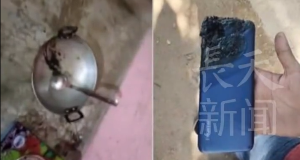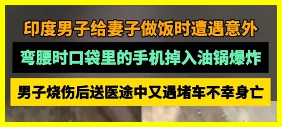 弯腰时衬衣口袋里的手机,掉落进了油锅,并发生了爆炸。