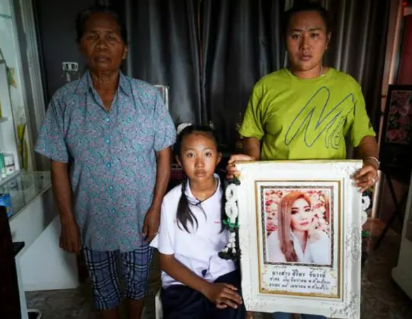 相框中的是其中一位受害者“西里蓬”,边上是她10岁的女儿及家人。