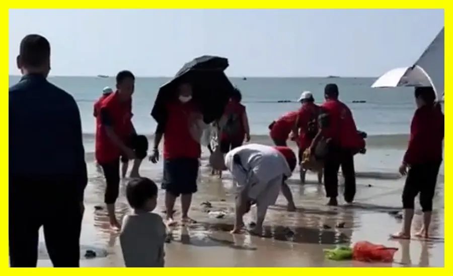 而这次之所以可以在海滩上把这些清理掉,正是因为这些淡水龟和牛蛙“不敢走”啊!搁那儿迷茫呢…