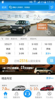 3. 人人车二手车 特点:提供各种品牌、车型、价格、里程的二手车信息,支持卖车、买车、加盟等服务。用户可以查看最新的特价好车,并下载APP获取更多优惠。